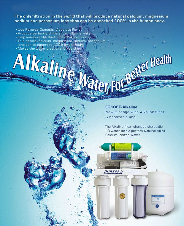 PurePro® EC106P-Alkaline is a super quality 6 stage filter system comes with PurePro® Alkaline Filter, to offer the very best in water filtration and balanced pH water for drinking. Using reverse osmosis technologies with alkaline filter can actually remove 99.99% of contaminants and provide people with healthy alkaline drinking water.